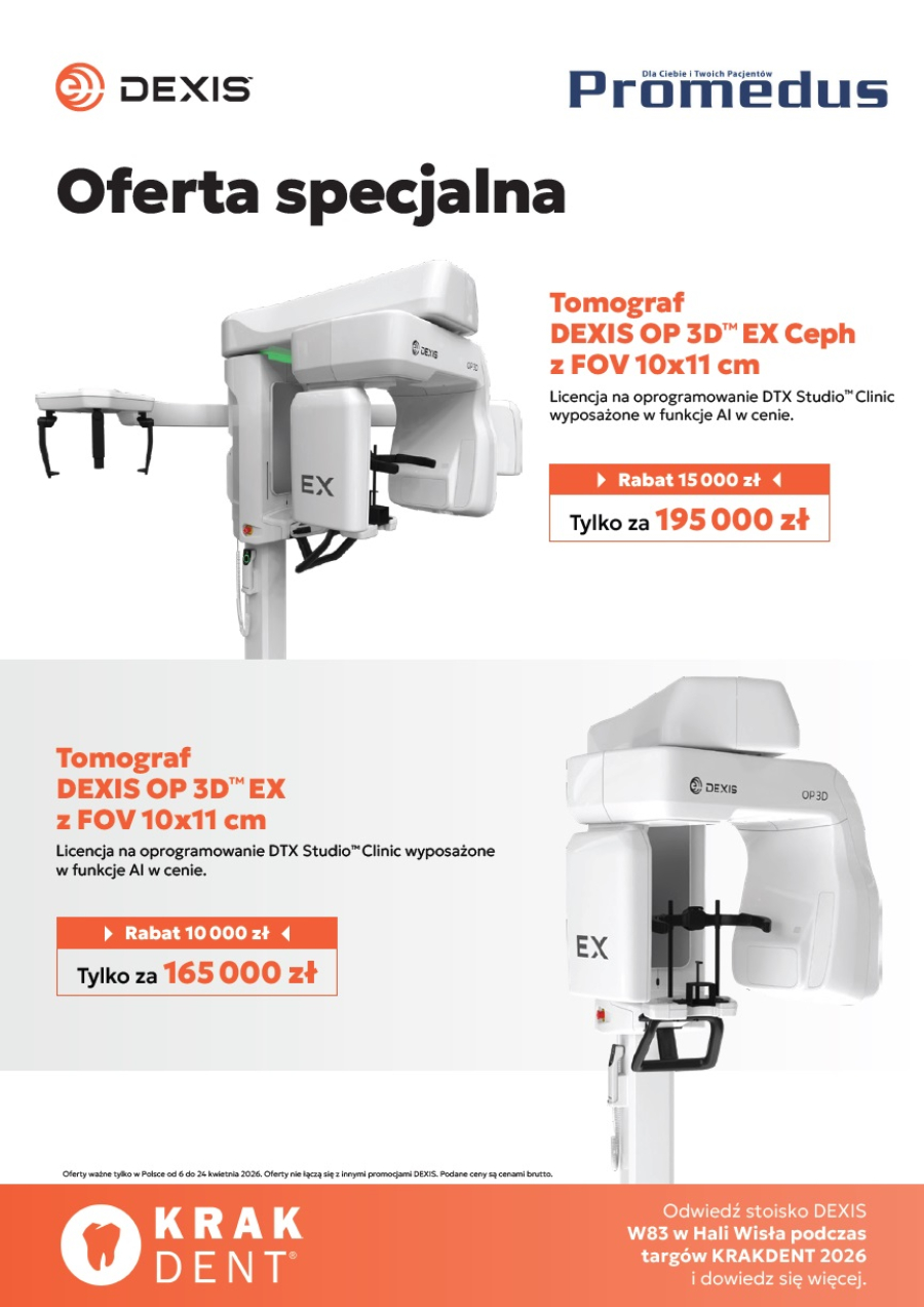 Wyjątkowa promocja na nowoczesne tomografy stomatologiczne DEXIS z serii OP 3D™ EX wspierane sztuczną inteligencją.